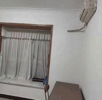 房子是在17栋二楼,属于合租,四室一厅,有两个卫生间,房间空调,床,衣柜和电脑桌都有。